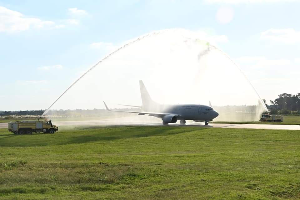 Su llegada fue el 27 de abril del año 2021, tras aterrizar, el B. 737 fue recibido con el tradicional arco de agua.